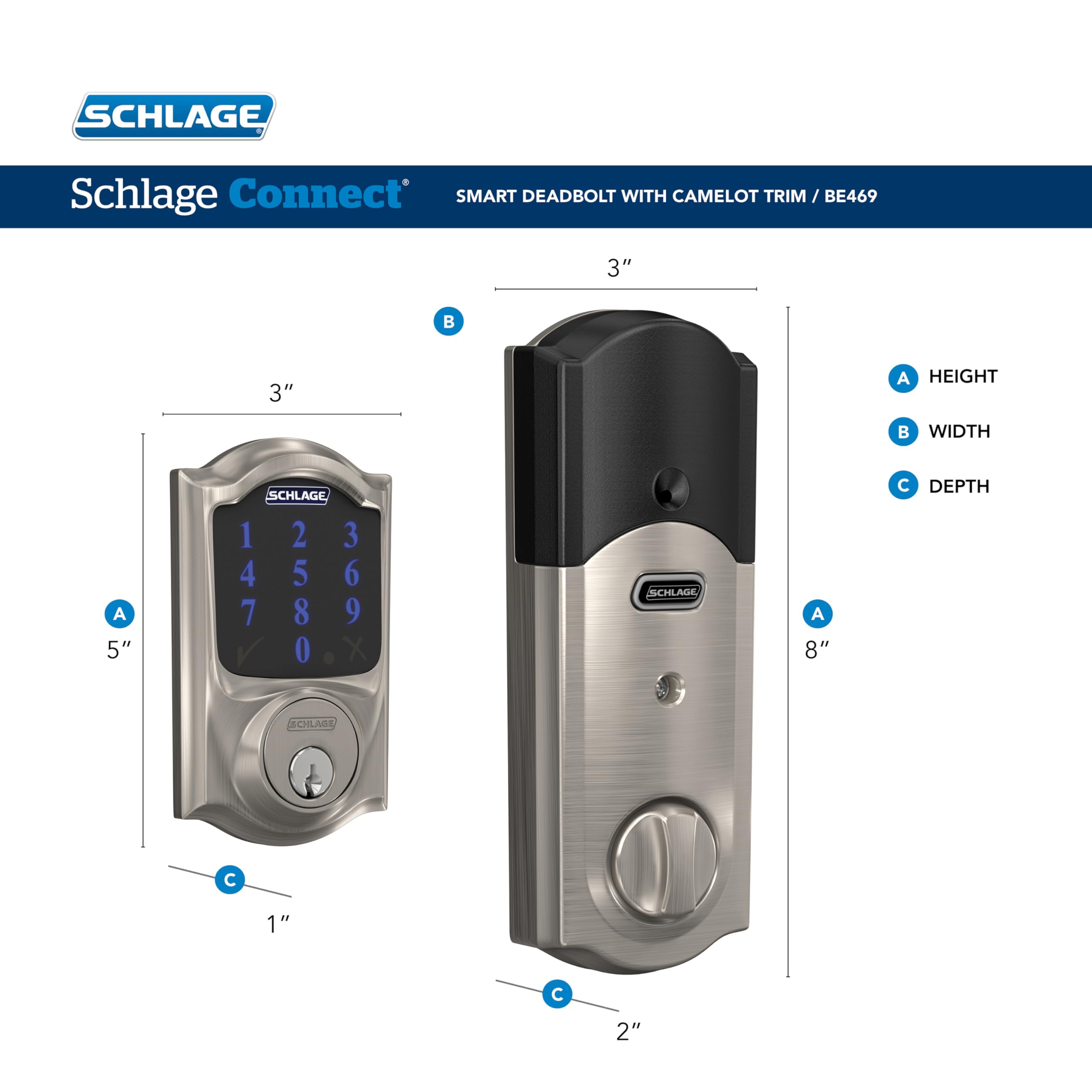 SCHLAGE BE469ZP CAM 716 SCHLAGE Connect Smart Deadbolt With Alarm Inbuilt Camelot Trim In Aged Bronze.β